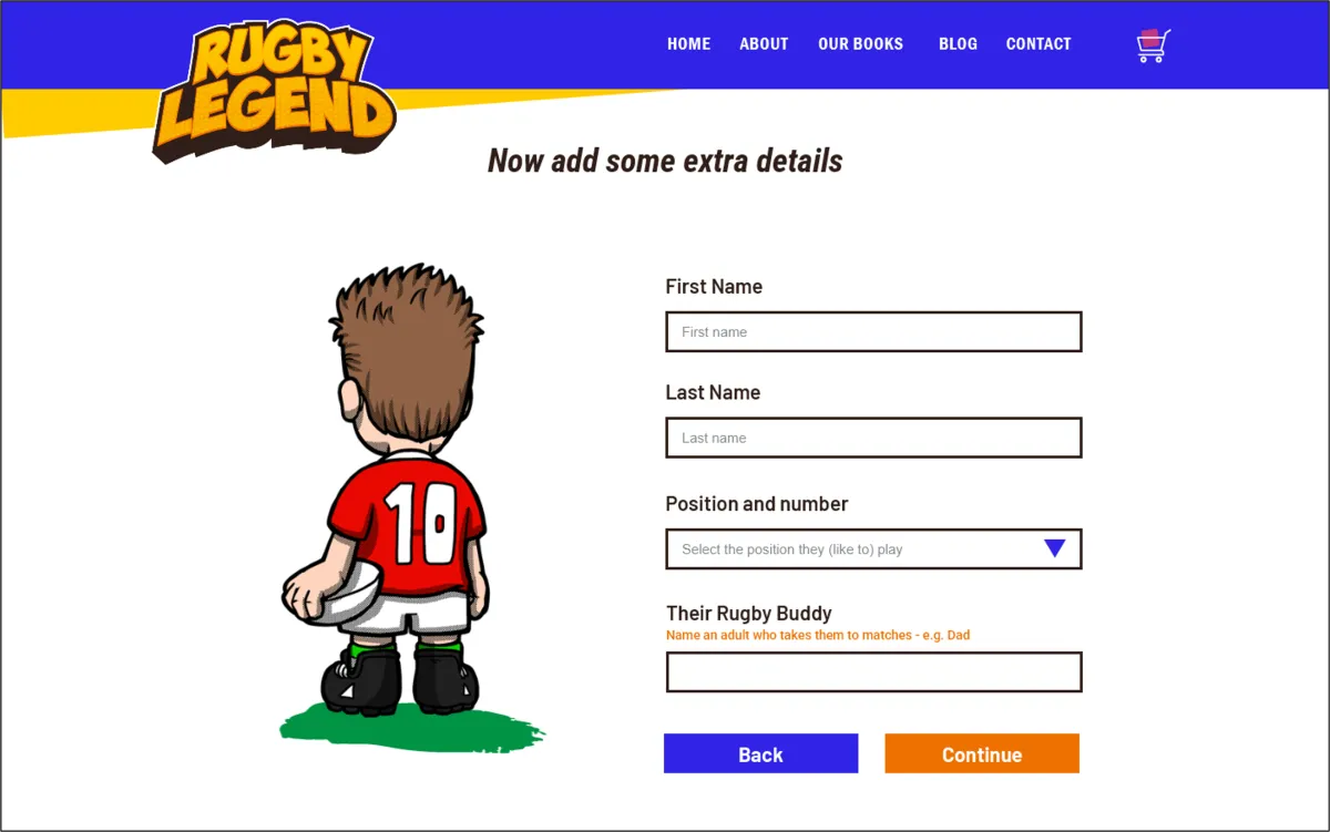 2: Add their name and position. Plus a 'Rugby Buddy' who takes them along to matches.